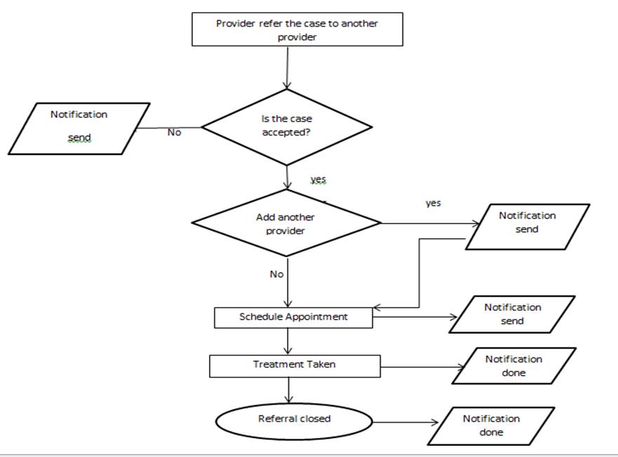 Reminder system:- Reminder system reminds the doctor about the tasks that have been fixed in connection to any action on the particular referral that is sent to him at the time set in the reminder list.