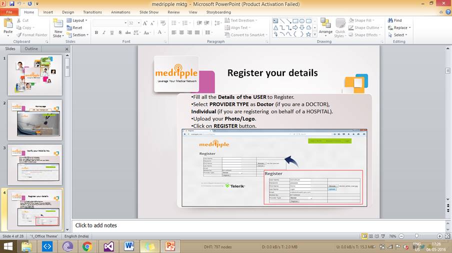 The system is an online web application called Medipple that can be accessed by Doctors and Hospital staff with a proper system to log into the system. This system can be used as an application to manage the patient referral system. This system can also be used by the doctors to connect with other working doctor.