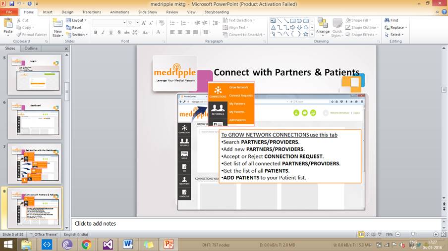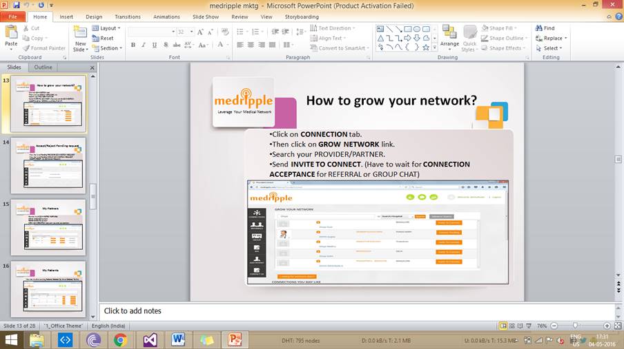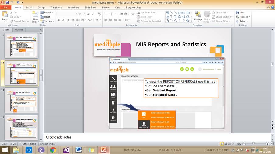 The proposed system is to make an online web application for the Medripple, so that the Doctors can register to grow their network and make a referral system easy . An administrator handles and manipulates all the data available in the system. The proposed system could be accessed from any corner of the world on net.