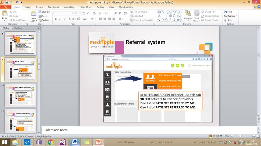 Referral:- It offers to management of referrals anytime anywhere cloud based platform, where the business can be managed, patient records can be added and the referral process can be managed.