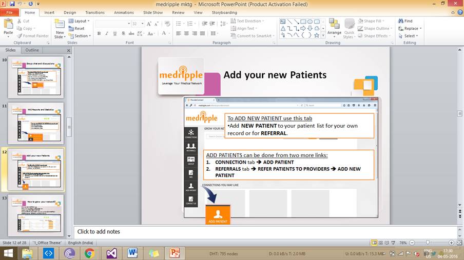 Medripple is an enterprise cloud platform that helps healthcare facilities (Hospitals, primary care, specialists, dentists) builds a stronger and more profitable network along with a faster and more efficient tracking system. It provides the environment for doctors where they track records of their patient. Doctors can also add report of the patients.